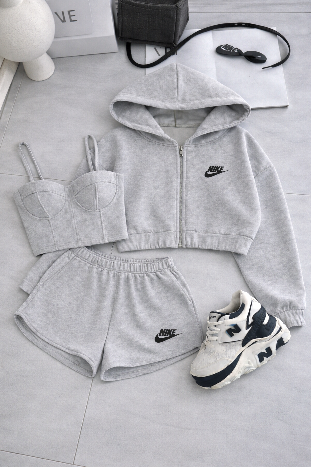 Hırka, crop ve eşofman altından oluşan bu 3’lü setin tamamı fiyata dahildir.